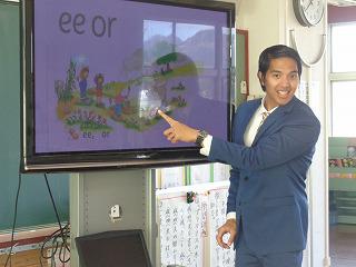 英語の授業、大~好き! 投稿日時 : 2019/12/06 校長 4年生の外国語活動の授業におじゃましました。なにやらとても楽しそうに発音の勉強をしています。チャールズ先生ともすっかり仲良しになりました。みんな笑顔です。4月のころの戸惑いはもうありません。発音もバッチリ!!4年生の今年のテーマ「やってみよう。誰よりも楽しもう。」の精神で、子どもたちの会話力はこれからもぐんぐんアップしそうです。