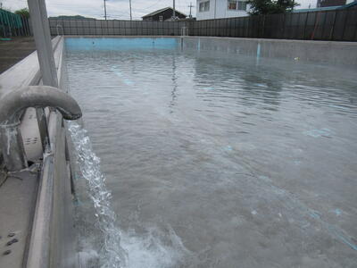 5月21日(金)、今日は朝から、プールに水を入れ始めました。午後4時、注水開始から7時間で、一番浅い所の水深が35cmになりました。とてもきれいです!本日の注水はここまで、続きはまた来週です。プールって、本当にたくさんの水を使うのですね。感謝、感謝。