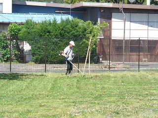 薬剤散布 投稿日時 : 2018/05/21 校長 5月19日(土)にPTA執行部とPTA保体部のみなさんによる薬剤散布を行いました。ふれあい除草できれいになった校庭には除草剤をまき、草が伸び始めた体育館駐車場や校舎北側の草刈りを行いました。当日は雨の予報でしたので実施が心配されましたが、晴れ男や晴れ女ばかりのPTAのみなさんが集まるのですから晴れないわけがありません。雨どころか、晴れ渡り、むしろ蒸し暑い中での作業になりました。おかげで短時間で作業も終わり、後は今週末の運動会に向けてグランドの整備は終わりました。お世話になりました。