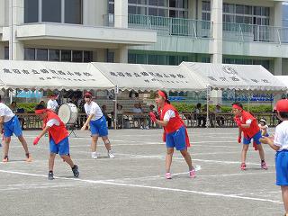 その頃下学年は 投稿日時 : 2018/05/17 校長 応援団の子どもたちが練習に取り組んでいる頃、下学年の子どもたちはクラスでまとまって遊ぶ共遊の時間でした。こちらもクラスのまとまりを作る上でとても大切な時間です。担任の先生と一緒に楽しく遊ぶ姿が見られました。