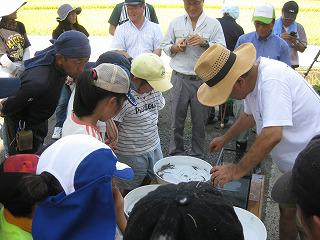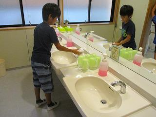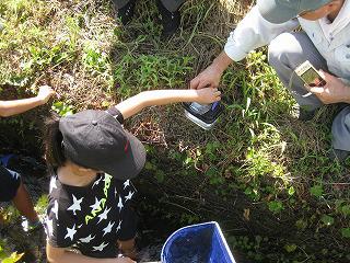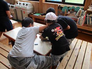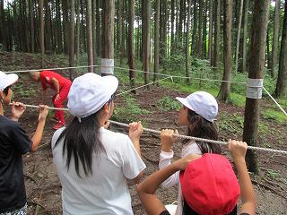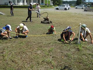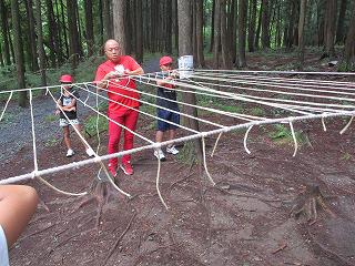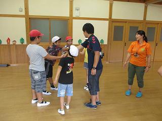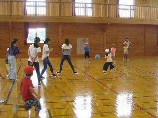 勉強の後はドッジボールで運動です。赤組親子対白組親子で対戦しました。ボールが2つ入ると急に目つきが変わり、親も子も真剣そのものです。みんな息を弾ませながら、大変盛り上がりました。