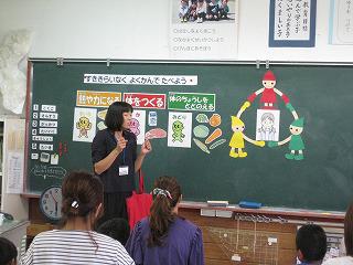 はじめに、板荷小の栄養士 吉原理恵様を講師にお迎えし、食に関する学習が行われました。