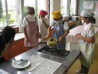 おー! すごーい! 投稿日時 : 2018/09/07 校長 3時間目、ちょっとお腹がすいてきたなと感じていたとき、家庭科室から何やらいいにおいがただよってくるではありませんか。においに誘われ行ってみると、5年生がポップコーンを作っていました。自分たちが農園で育てたとうもろこしです。火にかけ少しの間待つと、ポンポンとはじける音が聞こえてきました。ふたを開けると、満開の花が咲きほこるようなポップコーンに、大歓声がわき上がりました。できたてのポップコーンはとてもおいしかったです。ごちそうさまでした。
