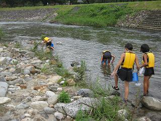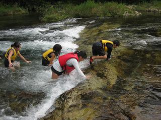 4年生自然体験学習 part5 投稿日時 : 2018/09/03 校長 2日目午後の活動は川遊びです。上流に向かって探検するグループと、水生生物の観察をするグループとに分かれました。腰までつかってしまうほどの深みを果敢に突き進む子どもたちの姿に、たくましさを感じました。水生生物観察では、カニや魚をつかまえることができました。石積みに挑戦したり、落ちていた木を使って、明日の火起こしの練習に励む子もいたり、いろいろな活動を楽しみました。
