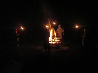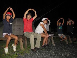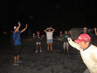 4年生自然体験学習 part6 投稿日時 : 2018/09/04 校長 2日目の夜はキャンプファイヤーです。準備もしっかりと行いました。火の神様から、協力、知恵、コミュニケーションの火をいただき、キャンプファイヤーが始まりました。クイズや出し物で盛り上がり、自然の家の方の「猛獣狩りに行こうよ」「UFOやって来い」でテンションはマックス。思い出に残る夜となりました。