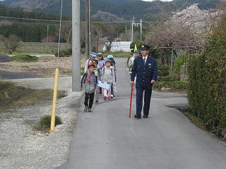 多くの方々に見守られ 投稿日時 : 2019/04/12 校長 学校の前の道の歩道が整備され、通学路を一部変更しました。これからは、駐在所の所で横断し、広い歩道を通って安全に通学することができます。この通学路変更にあたっては、自治会長様をはじめ、地域の皆様、PTAの方々等、多くの方からお力添えをいただきました。感謝申し上げます。 朝は、毎日、交通指導をしてくださっている体育館管理者の廣田さん、駐在所の坂本さんに見守られ、元気に登校しています。