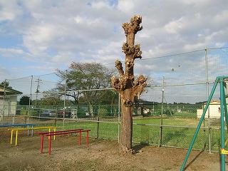 今日は、鹿沼市教育委員会施設係作業班の皆様が、朝早くから高所作業車を持って来てくださり、校庭の銀杏の木と体育館駐車場の桜の木の枝を落としてくださいました。葉が豊かに茂った銀杏の木の周りは、このところスズメバチが飛び交うようになってしまい、子どもたちの大好きなブランコの近くなだけに注意を払っているところでした。駐車場の桜の木は、道路の電線にかかるほどに枝を伸ばしてしまい、週末の大型台風を前に気をもんでいたところでした。