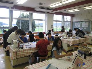 5年生は、家庭科で初めてのミシン縫いです。上糸や下糸はどうやってかけるのかな?縫い始めは、返し縫いをして・・・方向を変えるときは、針を刺したまま・・・など、慣れない手つきでランチョンマットを作ります。そんな子どもたちに強い味方が来てくださいました。かぬま教育支援ネットワーク「蘖」で紹介していただいたミシンボランティアの方々です。しつけ糸のかけ方、布の四隅のミシンのかけ方など、一人一人に寄り添い丁寧に教えていただき、ランチョンマットを完成することができました。完成したランチョンマットは、給食で使うのかな?ミシンボランティアの皆様、ありがとうございました。