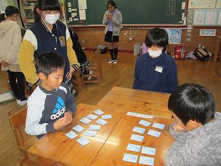 どれに入ろうか、楽しみです 投稿日時 : 2019/11/26 校長 早いものでもうすぐ12月。今年ももう終わりです。来年4月に4年生に進級する3年生たち。今日は、楽しみにしていたクラブ見学です。4年生になると上級生と一緒にクラブ活動に仲間入りする3年生たちは、わくわくしながらクラブ見学に出発しました。難しそうな短歌を読み上げているのは、百人一首クラブです。下の句を聞いて札を探します。「カルタみたいで楽しかった。」「もっとやりたい。」3年生はうれしそうです。おいしそうな匂いがするのは家庭科クラブ。野菜スープを調理中です。あま~い匂いがするのは、科学工作クラブ。べっこう飴づくりを見せてもらいました。ドッジボールに入れてくれたのはスポーツクラブ。上級生の投げるボールに、ドキドキでした。さあ、3年生のみなさん、4年生になったらどのクラブに入るのかな?楽しみですね。