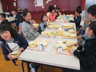 おいしく炊けました 投稿日時 : 2019/12/12 校長 今日は、5年生の調理実習です。ごはんと味噌汁を作りました。普段は炊飯ジャーでスイッチ一つで炊き上がるご飯。今日は、ガラス鍋を使って、米から炊ける様子を観察です。「もう中火かな?」「こげくさい!弱火弱火」と時間と火加減に注意して、わいわい言いながら炊いていきます。味噌汁は、にぼしの頭とはらわたを取って、だし汁を作ります。ふっくらおいしく炊き上がったご飯、少しおこげのついたごはん。グループによってそれぞれにおいしいご飯が炊けました。温かい味噌汁と合わせて、給食の後なのに完食してしまいました。
