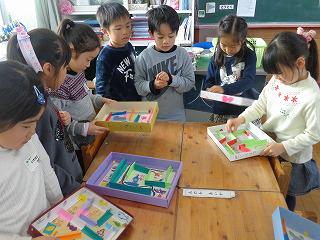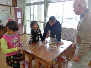 おじいちゃん、おばあちゃんと一緒 投稿日時 : 2019/12/03 校長 1年生が生活科の学習で、おじいさん、おばあさんから昔の遊びを教えていただきました。おはじき、あやとり、こま、けん玉、折り紙、めんこ、お手玉など、子どもたちはとってもうれしそう!みんな思ったよりも器用で、おじいさん、おばあさんにたくさん褒めていただきご機嫌でした。