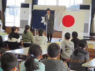 2019年12月の記事一覧 2019年12月 全ての記事 カテゴリ 今日の出来事 連絡事項 保健室より 1年生 2年生 3年生 4年生 5年生 6年生 アーカイブ 2025年12月 (0) 2025年11月 (0) 2025年10月 (0) 2025年9月 (0) 2025年8月 (0) 2025年7月 (0) 2025年6月 (0) 2025年5月 (0) 2025年4月 (0) 2025年3月 (0) 2025年2月 (0) 2025年1月 (0) 2024年12月 (0) 2024年11月 (0) 2024年10月 (0) 2024年9月 (0) 2024年8月 (0) 2024年7月 (0) 2024年6月 (0) 2024年5月 (0) 2024年4月 (0) 2024年3月 (0) 2024年2月 (0) 2024年1月 (0) 2023年12月 (0) 2023年11月 (0) 2023年10月 (0) 2023年9月 (0) 2023年8月 (0) 2023年7月 (0) 2023年6月 (0) 2023年5月 (0) 2023年4月 (0) 2023年3月 (11) 2023年2月 (16) 2023年1月 (10) 2022年12月 (4) 2022年11月 (1) 2022年10月 (6) 2022年9月 (15) 2022年8月 (0) 2022年7月 (1) 2022年6月 (4) 2022年5月 (2) 2022年4月 (3) 2022年3月 (10) 2022年2月 (5) 2022年1月 (4) 2021年12月 (13) 2021年11月 (14) 2021年10月 (12) 2021年9月 (9) 2021年8月 (4) 2021年7月 (15) 2021年6月 (15) 2021年5月 (19) 2021年4月 (11) 2021年3月 (10) 2021年2月 (10) 2021年1月 (9) 2020年12月 (7) 2020年11月 (19) 2020年10月 (16) 2020年9月 (14) 2020年8月 (8) 2020年7月 (11) 2020年6月 (16) 2020年5月 (10) 2020年4月 (12) 2020年3月 (3) 2020年2月 (12) 2020年1月 (9) 2019年12月 (15) 2019年11月 (9) 2019年10月 (14) 2019年9月 (17) 2019年8月 (6) 2019年7月 (18) 2019年6月 (25) 2019年5月 (2) 2019年4月 (11) 2019年3月 (13) 2019年2月 (29) 2019年1月 (10) 2018年12月 (10) 2018年11月 (19) 2018年10月 (34) 2018年9月 (17) 2018年8月 (10) 2018年7月 (16) 2018年6月 (17) 2018年5月 (36) 2018年4月 (7) 2018年3月 (9) 2018年2月 (9) 2018年1月 (7) 2017年12月 (10) 2017年11月 (16) 2017年10月 (21) 2017年9月 (14) 2017年8月 (5) 2017年7月 (7) 2017年6月 (12) 2017年5月 (5) 2017年4月 (4) 2017年3月 (5) 2017年2月 (4) 2017年1月 (1) 2016年12月 (0) 2016年11月 (1) 2016年10月 (0) 2016年9月 (1) 20件 1件 5件 10件 20件 50件 100件 2学期も大変お世話になりました 投稿日時 : 2019/12/25 校長 今日で長かった2学期も終わりです。終業式の前に表彰が行われました。書道や児童画、文芸作品のコンクール、きれいなまちづくり標語、持久走大会や多読賞など、校内外での表彰がたくさんありました。2学期の頑張りをみんなでたたえ合いました。 終業式では、各学年の代表が、2学期に楽しかった行事、頑張った勉強などをインタビュー形式で発表しました。みんな堂々と立派な態度でした。校長先生からは、宿泊学習や遠足、学習発表会など、2学期の楽しかったことの陰には、みんなのために力を尽くしてくれた人がいること。そして、すべての人に感謝の気持ちを伝えようとお話がありました。児童指導の先生からは、(は)早寝・早起き・朝ごはん。(ひ)火遊びをしない。(ふ)不審者に気を付けよう。(へ)勉強を頑張ろう。(ほ)本気で取り組もう。とのお話がありました。安全で楽しく、有意義な冬休みを過ごしてほしいと思います。 おかげさまで、大きな問題もなく、実り多い充実した2学期を過ごすことができました。保護者の皆様、地域の皆様、関係の皆様に感謝申し上げます。どうぞ、よいお年をお迎えください。 ちょっぴり淋しいクリスマスイブ!だって・・・ 投稿日時 : 2019/12/24 校長 今日はクリスマスイブ! そして2学期終業式前日! だけどちょっぴり淋しいのは、インフルエンザで休んでいる友達が多いから。「早く元気になりますように。」そんな願いを込めて、今日の子どもたちをお届けします。 休み時間の校庭からは「もう、クリスマスプレゼントもらっちゃった」「インフルエンザ、治ったぞ」「見て見て、ツバメの宙返り」「私、天才だから・・・」「行くよ」など、伸びやかな声があちらこちらから聞こえてきました。子どもたちはすこぶる元気です。ランチルームでは、明日の終業式の練習に励む子どもたちがいました。真剣そのもの、これなら明日はバッチリです。授業が始まると、音楽、算数、体育、学級活動・・・どの学年も仲睦まじく2学期のまとめをしていました。たくさん学んだ2学期でした。給食のクリスマスケーキは、明日に延期です。全員で食べられるとよいのですが・・・。 6年生、税金について学ぶ 投稿日時 : 2019/12/20 校長 今日は、鹿沼税務署管内租税教育推進協議会の皆様を講師にお招きして、6年生を対象にした租税教室を実施しました。最初は「どうして消費税は10%になったの?とられるのはちょっといやだな」と思っていた子どもたちでしたが、授業が終わる頃には、税金のおかげで自分たちが安心して楽しく暮らしていけるのだと気づき、納得した表情になりました。正しい知識を得ることの大切を痛感しました。 授業の最後に、1億円の束を見せていただき、一同、驚きの声をあげました。「持ってみるかい」のお誘いに、全員大盛り上がり!「1億円は重い」「重い」と興奮しました。市田会長様はじめ講師の皆様、たいへんありがとうございました。 見野住吉神社にまつわるお話会 投稿日時 : 2019/12/18 校長 見野にお住まいの吉澤秀夫様・洋子様をお招きして、見野の鎮守、住吉神社にまつわる「改心の石」というお話をしていただきました。このお話は、吉澤秀夫様が現在