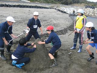 臨海自然教室 1日目 投稿日時 : 2019/12/12 校長 12月4日、天候にも恵まれ、たくさんの方々に見送られながら、5年生が臨海自然教室へと出発しました。バスに2時間ほど揺られると海が見えてきました。「おー、きれー!」大歓声があがり、みんなのテンションが一気に高まりました。 1日目、最初の活動は館内ウォークラリーです。難しいクイズにもみんなで協力して取り組み、無事全員がゴールすることができました。空いた時間を使って砂浜を散歩し、海を満喫することもできました。貝殻キーホルダー作りでは、穴を開ける作業に苦労しましたが、それもみんなで協力して乗り越え、よいお土産ができました。1日目は、みんなで協力する姿がとても印象的でした。