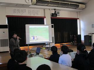 はじめに生徒会の新役員の皆さんによる北中学校の紹介、次に生徒指導の先生からのお話、その後中学1年生の様々な授業を参観しました。所々で本校卒業生の姿を見つけては表情を柔らかくする姿を見て、子ども同士の確かなつながりの大切さ、ありがたさをしみじみ思いました。
