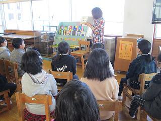 今週は、3学期に入り1回目の読み聞かせがありました。低学年では、「かわにくまがおっこちた」という本を読んでいただきました。最初は、おしゃべりをしていた子どもたちも、お話が始まると熱心に聞き始め、お話の世界に入っていました。中学年では、食べ物のしりとりの本で、みんなで楽しくしりとりを考えました。高学年は、鹿沼の民話「いも正月」です。鹿沼のお雑煮に、里芋が入っているいわれが書かれています。里芋入りで酒粕の入った味噌味のお雑煮は、鹿沼だけなんだそうです。地域によってお雑煮の作り方もいろいろですね。ボランティアの方の読み聞かせから始まり、図書委員会の児童の読み聞かせも行われ、3学期もたくさん本に親しむ機会をつくりたいと思っています。