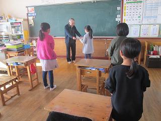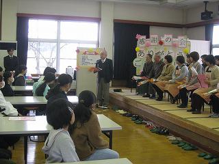 3学期に入り、今年度最後の授業参観でした。1年生は、入学してからできるようになったことを発表しました。2年生は、自分の成長をクイズにして、みんなで楽しく考えました。3年生は、図工で箱などを利用した弦楽器づくり。最後は、みんなで演奏して盛り上がりました。4年生は、二分の一成人式。10歳になった記念に、これからの抱負や感謝の気持ちを伝えました。5年生は、親子バスケットボール。子どもたちに負けない保護者の方の素早い動きに感動でした。6年生は、12歳の自分発見。今までの成長と今後の抱負などの作文発表でした。