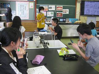 授業は、机と机の間隔を空けて行っています。グループ学習も、マスクを付け、間隔を十分にとって行っています。