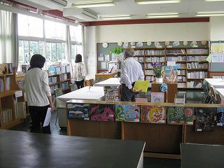 図書室は、朝から窓を開けて換気をしています。貸出しのときは、密にならないよう足跡マークに並びます。返却ボックスを曜日ごとに分け、すぐには貸し出さないようにしています。