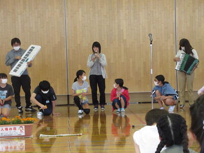 5月24日、人権擁護委員協議会鹿沼部会様が「人権の花」をプレゼントに来てくださいました。お花を育てながら、命を大切に思う心のやさしさや思いやり、強さも育ててほしいという話を、子どもたちはとてもよい表情で聞きました。人権絵画を鑑賞させていただきながら、絵に込められた思いを想像し、最後は、全員参加型のミニミニコンサートを楽しみました。曲目は「ビリーブ」と「ドレミの歌」の2曲。6年生も先生方もぶっつけ本番でドキドキでしたが、人権擁護委員様の優しいリードのおかげで、素敵な音と空気が体育館いっぱいに広がるのを感じることができました。贈呈式終了後、早速、6年生がお花を植えました。なんだかとても幸せな気持ちです。大切に育てたいと思います。