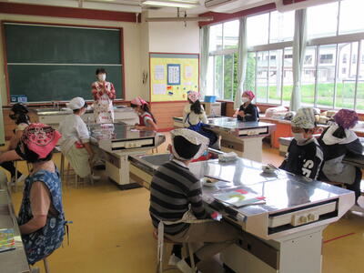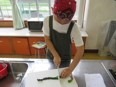 5年生が、初めての調理実習にチャレンジしました。もちろん、コロナ禍の中なので個人調理です。自分のものは自分で作ります。子どもたちは、真剣そのもの。自分でゆでたほうれん草に満足の表情を見せました。