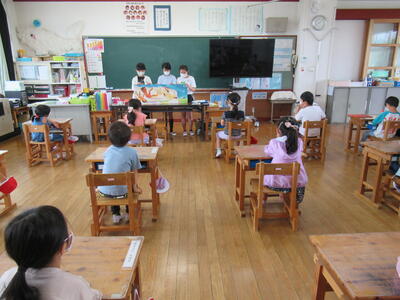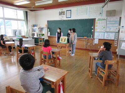 図書委員会の子どもたちが、黒川様からご寄付いただいた大型絵本を使って、下学年の子どもたちに読み聞かせを行うというのでお邪魔してみました。なんともほほえましい空気です。活動を終えたばかりの図書委員さんに「手ごたえはどうでしたか?」と聞いてみると、「うーん」と少し考えた後、「手ごたえありです」と、にっこり。次回が楽しみです。