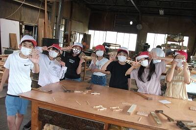 皆で組子作り体験をさせていただきました。コツを教えていただきながら、上手に作ることができました。