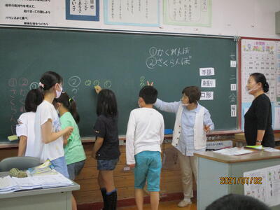いよいよ夏休みが始まりました。学校では、7月21日と26日に、子どもたちの学習をサポートをしようと、自由参加の学習教室を開きました。多くの子どもたちがやってきて、宿題や自主学習、1学期の復習など、教員のアドバイスを受けながら熱心に取り組みました。自分から取り組む意欲、そして、仲間とともに学ぶ集団の力は、なんてすごいのでしょう。迫力のようなものを感じました。