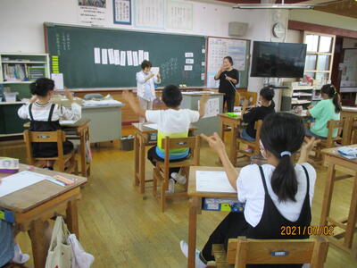 5年生が、鹿沼地区手話通訳者連絡会からお二人の講師の先生をお招きして、手話を学びました。明るくて素直な子どもたちを講師の先生方がたくさんほめてくださり、5年生は絶好調!たくさんの単語やあいさつの手話を楽しくマスターしました。