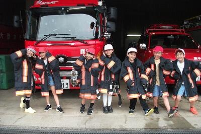 鹿沼消防署では、実際に隊員の方が着用している服を着させていただきました。子供たちもノリノリです。