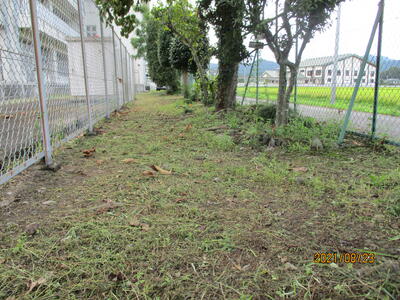 県の緊急事態宣言を受けて、22日のPTA奉仕作業は中止とさせていただきましたが、そのような中にもかかわらず、見友会の皆様や学校支援ボランティアの皆様が、本校の広い広い敷地の草刈りと除草剤散布を実施してくださいました。地域の皆様には、いつも心にかけていただき、ご支援いただき、本当にありがとうございます。心より感謝とお礼を申し上げます。