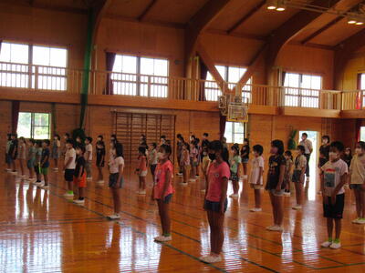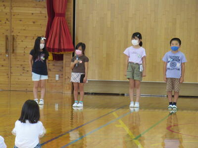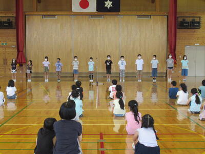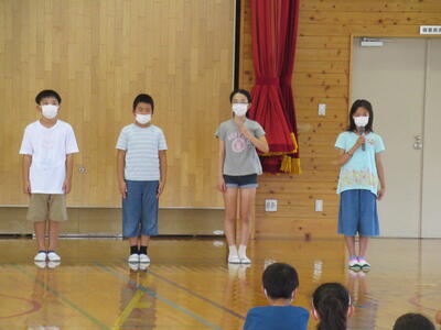 いよいよ2学期が始まりました。始業式では、各学年の代表児童が、2学期に頑張りたいことや楽しみなことを堂々と発表しました。全校児童の拍手が、体育館いっぱいに優しく響きました。校長先生からは「友達や先生方と一緒に、うーんと考えて、うーんと話し合って、みんなで思いっきり楽しい2学期にしましょう」という話がありました。それから「病気で苦しんでいる人を絶対にいじめません」という約束もしました。よーし、頑張るぞ!
