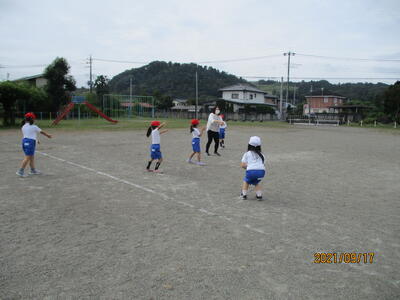 今日の昼休みは、週1回のクラス共遊です。昼休みになると、子どもたちがわいわい言いながら、にぎやかに校庭に出てきました。今日の遊びは、1年生はへび鬼、2年生はジャングル鬼、3年生はタイヤ跳びじゃんけん、4年生は三本線、5・6年生は合同でドッジボールに決まったようです。各学年の遊びの輪が、あっという間に校庭いっぱいに広がりました。