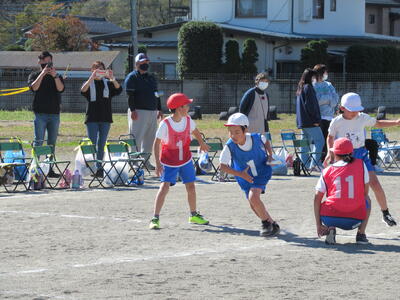 子どもたちの大きな楽しみ。おうちの人と楽しく障害走。