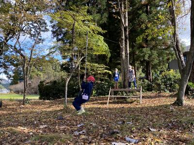 雑木林の中の遊具をお借りして遊ばせてもいただきました。
