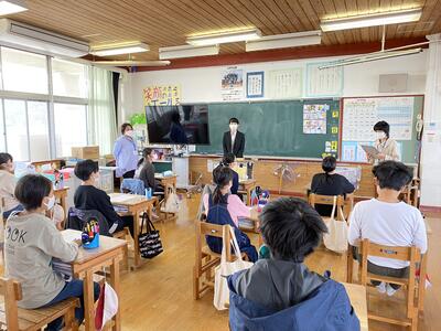 教室の大型モニターで動画資料を提示し、視覚に訴える指導の工夫も行いました。