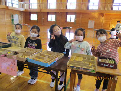コロナ禍の影響で延び延びになっていた来入児学校参観をようやく実施することができました。1年生が生活科の授業で手作りした昔の遊びグッズを使ってみんなで遊びました。松ぼっくりけん玉、どんぐりやじろべえ、どんぐり迷路、どんぐりコマ、おはじき、お手玉、だるま落とし。どれもみんな1年生の自信作ばかり!アイディアいっぱい、楽しさ満点です。皆さんの入学を楽しみにしています。