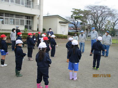 人と自然が協力しながら美しい雑木林ができていることや、その中での食物連鎖などについて教えていただきました。また、菊沢の山からタヌキやイノシシ、シカやイタチなどが遊びに来ることを聞き、子どもたちはワクワクでした。