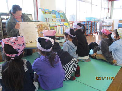昼休みに、図書支援員さんが大型絵本の読み聞かせを行ってくださいました。興味のある人は誰でもどうぞ!なんてうれしいお誘いなのでしょう。今日の本は「ふゆのよるのおくりもの」というクリスマスにちなんだお話でした。すてきな時間をありがとうございました。