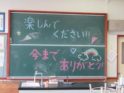 本校は調理員さんの顔が見える給食をいただいています。調理室が体育館通路に面しているため、子どもたちは、毎日、調理員さんが朝早くから働いている様子を見ながら生活しています。給食の時間になると、一人一人がカウンターの調理員さんに「いただきます」とあいさつをしてランチルームに入り、ほぼほぼ完食します。そんな子どもたちが「ありがとう」の気持ちを込めて、給食感謝の会を開きました。企画運営は代表委員の子どもたちです。緊張しながらも気持ちを伝えようと一生懸命でした。「調理員さん、毎日、おいしい給食を作ってくださりありがとうございました。おかげで、嫌いなものも少しずつ食べられるようになりました。」うれしいひと時でした。