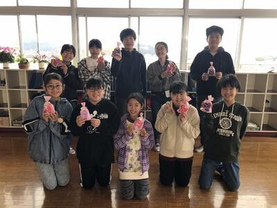 KLVの皆様が、6年生の卒業を祝って、手作りのミニランドセルをプレゼントしてくださいました。自分のランドセルと色も形もそっくりのミニランドセルに「キャー、すごーい、私のランドセルだあ。いつの間に・・・」と感動!最高の笑顔を見せました。KLVの皆様、ありがとうございました。