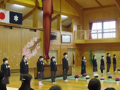 3月の優しい雨がしっとりと草木を潤した3月18日、おかげさまで、10名の卒業生が、全校児童・職員に見送られて立派に巣立っていきました。素直で、前向きで、チャレンジ精神旺盛で、どんな時にも全員が全員を思いやり、みんなで思い切り楽しみながら、菊沢西小学校にワクワクするような風をたくさん吹かせた10名は、まさに本校自慢のリーダーでした。卒業を迎えた今の思いを堂々と語る「卒業生別れの言葉」、在校生全員の思いを一つにまとめた「卒業生に贈る言葉」は、卒業生はもちろん、ともに学んだすべての者の心にあたたかくしみました。うれしい春の予感です。ご卒業おめでとうございます。