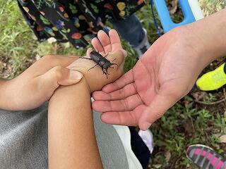 この日は暑かったので、室内で飼っているコクワガタを見て、過ごしている子もいました。
