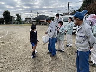 終わってから、2年生が畑で採れたサツマイモとサツマイモのつるで作ったリースをプレゼントしました。本来ならば、希望の家の方と一緒に芋ほりをする予定でしたが、新型コロナウイルス感染症拡大のため中止になってしまいました。苗植えは一緒に行えたので、来年こそ収穫まで一緒に行えることを願っています。