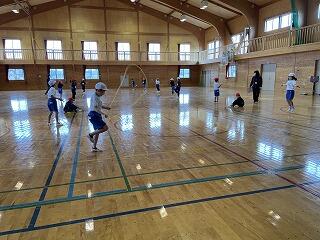 1年生は、駆け足跳びと3分間の持久跳びです。持久跳びでは3分以上跳べた児童が3人もいました。