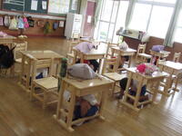 今回は、新たな自教室からの避難経路の確認、防火扉が閉まっている状況での避難、避難後の集合場所の確認、引き渡し想定訓練を休み時間に実施しました。特に、初めての避難訓練となった1年生は、机の下にもぐり、指示があるまで落ち着いて指示を待つなど、事前の指導が行動に出ていました。保護者の皆様にもマチコミメールにて引き渡し想定訓練に参加していただき、ありがとうございました。自分の命を守る行動がとれるよう、今回の振り返りをもとに今後の訓練につなげていきたいと思います。