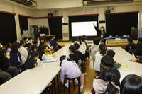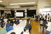 間近に迫った臨海自然体験学習に向けて、板荷小学校の児童とともに、事前学習会を開きました。各班の班長や副班長を決めたり、班の活動目標を立てたりしながら、当日の学習活動を確認し合いました。最後は、一緒にドッチビーをするなど交流を行い、互いの距離を縮めた子供たちは、出発当日を迎える楽しみが増したようです。