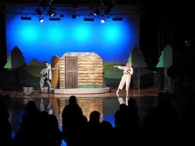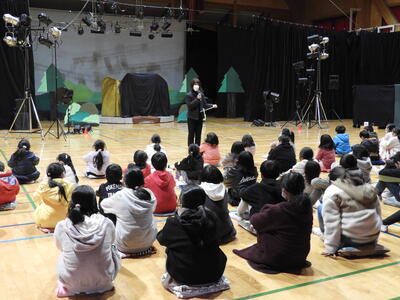 1月20日、らくりん座友の会様のご支援をいただき、念願の「らくりん座演劇鑑賞会」を本校体育館において開催することができました。感染症対策強化により、保護者の皆様や地域の皆様をお誘いすることはできませんでしたが、子どもたちは大喜び!本物の舞台の魅力に大興奮でした。