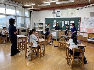 5年生手話教室 投稿日時 : 2023/06/29 校長 5年生が総合的な学習「手と手をつないで」の学習で、鹿沼地区手話通訳者連絡会から2名の方に来ていただいて、手話教室を行いました。聴覚障がい者の方と手話通訳の方お二人のやり取りを見て、初めは緊張気味でしたが、徐々に手を動かしながらリラックスして学習することができました。そして、体験を通して、どうしたら伝えることができるのか、一人一人が考えることができました。