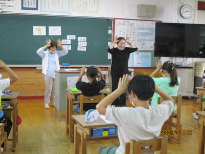 5年生が、鹿沼地区手話通訳者連絡会からお二人の講師の先生をお招きして、手話を学びました。明るくて素直な子どもたちを講師の先生方がたくさんほめてくださり、5年生は絶好調!たくさんの単語やあいさつの手話を楽しくマスターしました。