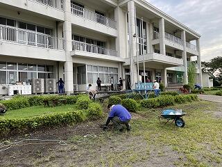 8月21日には、早朝から、保護者の方々をはじめ、見友会や菊西サポートの皆様に御協力いただき、奉仕作業を実施することができました。学校の敷地の隅々まで除草や樹木の剪定をしていただいたり、校舎の窓ガラスをピカピカに磨いていただいたりして、気持ちよく2学期を迎えることができました。本当にありがとうございました。
